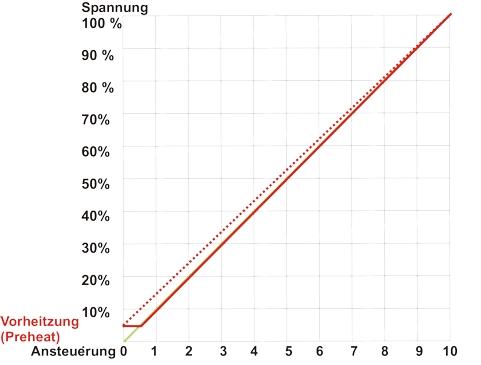Ständige ca. 5 % Ansteuerung für warme Wendel.