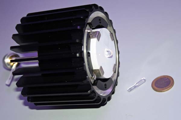 Das eigentliche Leuchtmittel der Microwellenlampe im Größenvergleich.