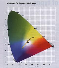 Ein strahlender Körper (Planckscher Strahler) ist ein Idealobjekt, das die gesamte Energie absorbiert und die Farbe von rot über gelb bis weiss ändert, wenn seine Temperatur zunimmt. Die absolute Temperatur T (K) des schwarzen Körpers wird als Farbtemperatur bezeichnet.