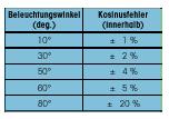Die Helligkeit einer planen Messfläche ist proportional dem Kosinus des Einfallwinkels der Lichtquelle. Die Bewertung des Empfängers muss also auch proportional dem Kosinus des Lichteinfallswinkels sein.