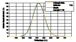 Wie in der Grafik links gezeigt wird, ist die Abweichung der relativen spektralen Empfindlichkeit im Vergleich zur Hellempfindlichkeitskurve der CIE innerhalb 8%. /5*