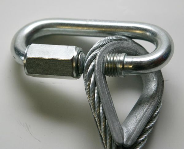 auch Kettennotglied genannt - gefordert. In der Regel werden für Sicherungsseile aber Schraubkarabiner (auch: Sicherheitskarabiner genannt) eingesetzt.