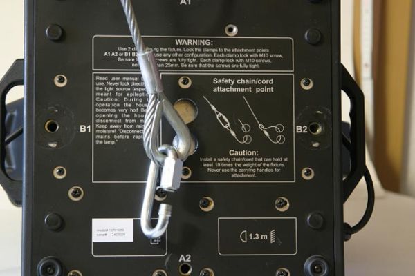 Da die Ausführungen der Movinglights bzw. deren Befestigungspunkte variieren, muss im jeweiligen Fall anhand der Dokumentation des Herstellers entschieden werden, ob ein Sicherungsseil nötig ist oder ob darauf verzichtet werden kann.