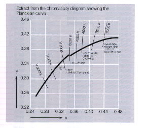 findet man oft die Temperaturwerte der plankschen Strahlung in dem Farbdreieck