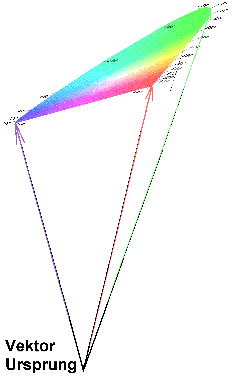 Schnitt am Pyramidenfuß der drei Farbvektoren, so kann man sich