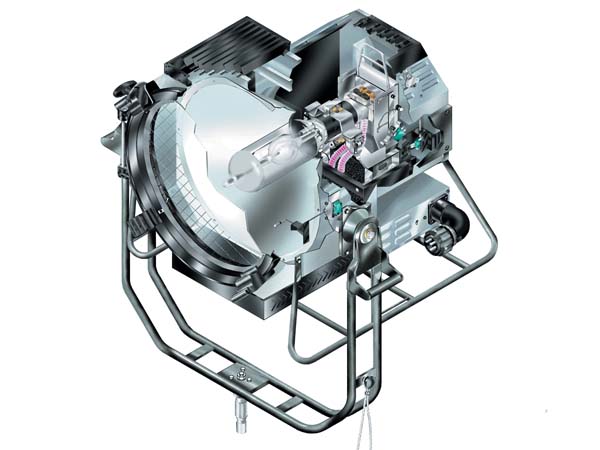 | Ein Source Four PAR ist die konsequente Weiterentwicklung eines PAR-Scheinwerfers um all seine Schwächen auszumerzen. Für die mechanische Stabilität sorgt nun ein ALU-Druckgussgehäuse. Von der optischen Grundkonstruktion holt er sich Anleihen vom Raylight PAR. Wobei hierbei das besondere ist, dass das Leuchtmittel nun speziell für den Scheinwerfertyp entwickelt wurde. Das Firlament des Leuchtmittels ist rotationssymetrisch wie eine Tonne aufgebaut. Zusammen mit dem Reflektor, dessen Fasetten auf die Segmente des Firlaments ausgerichtet wurden, ist nun mit diesem PAR auch eine gleichmäßige Ausleuchtung einer Fläche möglich, bzw. das Lichtbild ist weitestgehenst homogen, womit ein Einsatz in einem Theater zur Flächenausleuchtung möglich erscheint. Genutzt wird er aber mehr von Verleihern und Messebauern zum sauberen Ausleuchten von Flächen, da im Theater der Linsenscheinwerfer mit seiner stufenlosen Verstellung des Leuchtmittels doch mehr Möglichkeiten bietet. Statt nun das Leuchtmittel wie beim PAR auszutauschen um die verschiedenen Abstrahlwinkel zu verwirklichen, wird beim S4-PAR einfach nur eine Frontlinse ausgetauscht. | |||