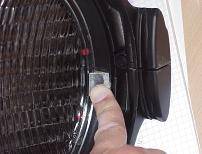 Betriebstemperatur nach 15 Minuten an der berührbar heißesten Stelle des Gehäuses bei Nennspannung. Man erkennt deutlich, dass trotz erhöhter Wattage des ETC Leuchtmittels die Gehäusetemperatur nicht höher ausfällt als beim Eurolite. Würde man den Eurolite mit dem gleichen Leuchtmittel betreiben, so würde er über die Maßen heiß werden. |