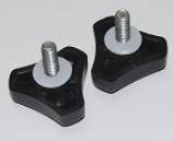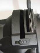 Die Halterung des Tubus ist beim ETC mit einer Rädelschraube ausgeführt. Eine zweite Schraube sitzt fest und ist nur mit Werkzeug zu lösen, sie sichert den Tubus als zweite unabhängige Sicherung vom Herausfallen. Der Tubus des Eurolite wird mit zwei Rädelschrauben fixiert. Eine Gefahr entsteht, wenn die zweite Schraube nach dem Lösen nicht wieder angezogen wird. Der Gummiring der ETC Fixierschraube erlaubt ein Festdrehen ohne großes Verschieben des Tubus. |