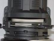 Der Goboeinschub und das Irisfach sind beim ETC am Ende mit einem Anschlag versehen. Ein Durchrutschen ist nicht möglich. Der definierte Tiefenanschlag erlaubt eine gleichbleibende Goboposition. Dagegen sind die Nuten beim Eurolite oben wie unten durchgängig. Damit ist es nicht möglich, mit den üblichen Gobohaltern ein Gobo einzusetzen, ohne das es durchrutscht. |