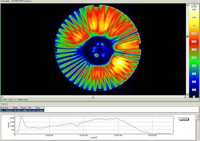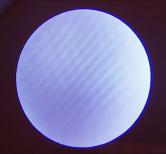 | BEsteht die Möglichkeit das Leuchtmittel exakt auch in der Tiefe zum Reflecktur und zum Spiegel oder Kondensorsystem auszurichten, so ist eine gleichmäßige Ausleuchtung möglich, wie nebenstehendes Bild zeigt. Dabei hat sich der Wirkungsgrad erheblich gesteigert, obwohl der axiale Peak- Candelawert nur gering zurückgegangen ist. |