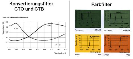 | Nebenbei, oftmals werden CTO oder CTB Filter mit Farbfiltern gleichgesetzt. CTO (Change to Orange und CTB Cange to Blue, haben aber einen sehr weichen Flankenverlauf um die Anteile des Kontniums gleichmäßig zu verschieben, wie man es im nebenstehenden Bild erkennen kann. | ![]() |