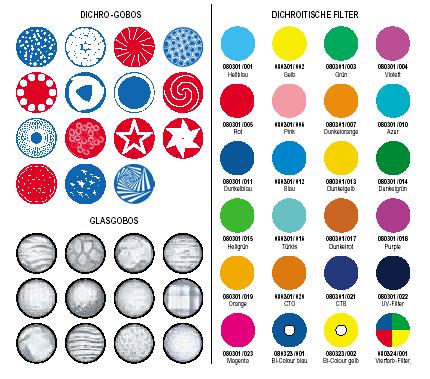 out: Auch die Frage nach den mitgelieferten Standardgobos nachgegangen werden. Sind mit den Motiven zeitgemäße Stimmungen zu erzeugen? Kann mann sich evtl. die Gobos selbst zusammenstellen wie es z.B. beim VL 1000 der fall ist? |