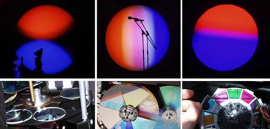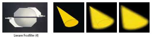 | Typische Torblendeneffekte werden mit geriffelten Gläsern ermöglicht. Die Scheibe kann rotieren und damit verändert sich der Winkel der Struckur im Strahlengang. |
