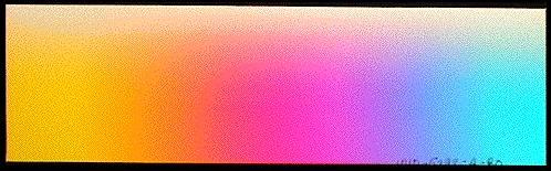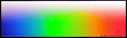 Sättigung Wie unschwer am Foto des Bandpassfilters zu erkennen ist, verläuft nicht nur die Farbe entlang der X-Achse, es ist auch ein Helligkeitsverlauf entlang der Y-Achse zu erkennen. Dieser Verlauf wird benötigt um von einer gefunden Farbe auf der X-Achse nun jeden gewünschten Pastellfarbton bis hin zum Weisspunkt, darzustellen zu können. Dabei wird nur ein Parameter verändert, nämlich der der Bewegung des Filters in der Y-Richtung. So kann der Operator mit einem Encoder die Farbe wählen und mit dem zweiten Channel die Sättigung festlegen. Die Pastelltöne werden erzeugt indem Weißlicht anteilig ungefiltert passieren kann. Um dies auf dem gleichen Filter zu erreichen müssen nach unten hin verlaufsförmig die Intefferenzschichten wieder entfernt werden. Dazu bedient man sich einen Gas- UV-Laser der die Schichten wieder zerstört ohne das Trägerglas anzugreifen. Eine Ätztechnik scheidet aus, da das Trägermaterial wie auch die aufgebrachten Layer aus SiOx bestehen. Die weggebrannten Flächen klein genug sein, damit die Projektoroptik die Übergänge nicht abzeichnen kann. Da aber der Strahl des verwendeten Laser zu groß ist, wird eine Maske über den Filter angefracht. Diese Maske ist mit keinen 40µm großen Löchern versehen deren Anzahl nach unten hin (Y-Richtung) bis zur völligen Durchlässigkeit zunimmt. So entsteht zusätzlich vom Ausgangsmaterial eines Farbverlaufes in der X-Richtung ein Sättigungsverlauf in der Y-Richtung. |
