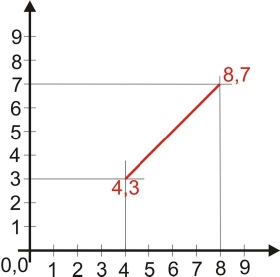 Um eine Linie zu Zeichen, gibt es verschiedene Varianten. Einmal kann man Absolute Kartesische Koordinaten eingeben. Kartesische Koordinaten definiert sich auf zwei Achsen die senkkrecht aufeinander stehen. Die Achse die horizontal verläuft wird als X-Achse bezeichnet und in rechter Richtung mit Plus gezählt. Folglich ist die Y-Achse die Vertikale und nach Oben hin wird auch mit Plus gezählt. Der Kreuzungspunkt der beiden Achsen ist der Nullpunkt. Nach unten oder Links von dem Nullpunkt werden sind negative Werte. Bei einer Eingabe einer Linie mit Hilfe der Absoluten Koordinaten, wird der Erste Punkt der Linie mit dem Abständen zum Ursprung eingetragen. Der zweite Punkt der Linie wird ebenfalls mit den Abständen zum Nullpunkt definiert. Das ist praktisch, wenn man weiß dass man z.B. von dem Bühnenmittelpunkt bis hinten an die Mauer muss, das von beiden die Koordinaten kennt und die Länge der Linie sich daraus erst ergibt.