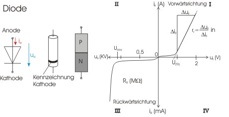 Schaltbild, Aufbau und Kennlinie der Diode