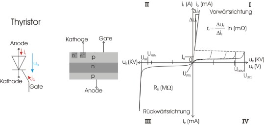 Schaltbild, Aufbau und Kennlinie des Thyristors