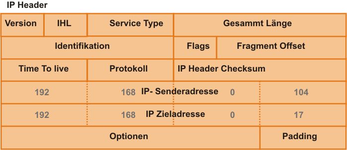 Weil aber MAC Adressen in der zweiten Schicht hardwarenaher Schichten zu finden sind, ist es jedoch für komplexere Netzwerke, die aus Subnetzen bestehen können, günstiger eine Adressierung einzuführen, die dem Aufbau eines Netzwerkes mehr Unterstützung zuteil werden lässt. IP ist die Abkürzung vom Internet Protokoll und darin gibt es auch eine Adresse, die IP-Adresse. Die funktioniert ähnlich dem Telefonnetz bestehend aus Vorwahl und Rufnummer. Bei der IP-Adresse ist die Vorwahl die Gruppe, also ein bestimmtes Netzwerk, und die Telefonnummer ist die Adresse des Gerätes. Da aber diese Adresse unterschiedlich große Netze unterstützen, jedoch nicht mit Bytes aasen soll, kann man die Aufteilung der zur Verfügung stehenden Zifferblöcke unterschiedlich aufteilen. Eine IP Adresse ist 4 Byte lang und wird byteweise dezimal aufgeschrieben wie z. B. 192.168.0.0. Die Aufteilung, welche Ziffern nun zur Netz-ID und zur Geräte-ID innerhalb dieses "Ortes" ist, übernimmt die sogenannte Subnetmask. Auch sie besteht aus vier Byte und kann damit genau die Größe der Netzwerke und deren Teilnehmer definieren. Zum Beispiel: die IP-Adresse 192.168.5.16 mit einer Subnetmask von 255.255.255.0 bedeutet, dass die Maskierung der Subnetmask, ähnlich einer Schablone, nur die Ziffern 192.168.5 hindurchlässt, was der Netz-ID entspricht. Der Rest, der nicht durch den Filter gelangte, ist in diesem Beispiel die 5. Also der Rechner mit der ID 5.