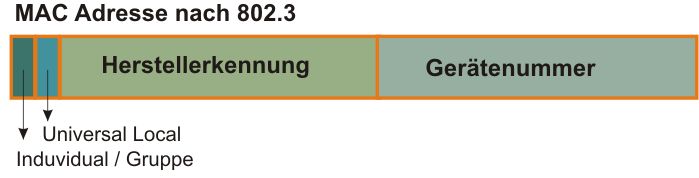 Jetzt haben wir zwei Adressen, eine MAC-, gerätebezogene Adresse und eine IP-Adresse,