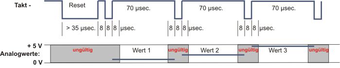 Beispiel für ein typisches Zeitmultiplexprotokoll. Bei 192 Kreisen beträgt die schnellste Zykluszeit somit 15 Millisekunden, bevor der nächste Datensatz gesendet werden kann, bzw. der Dimmer den nächsten Ansteuerwert erhält.