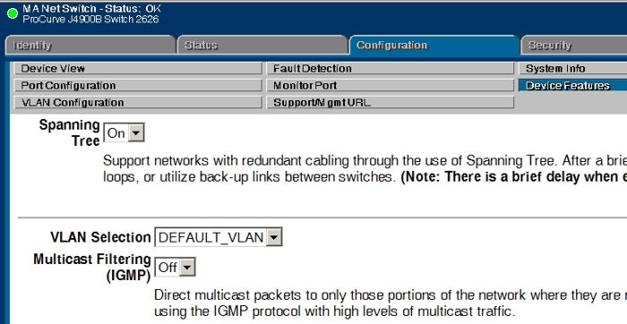 NHaverie möglich durch multiple Spanning Tree, angezeigt von einem Switch Menü