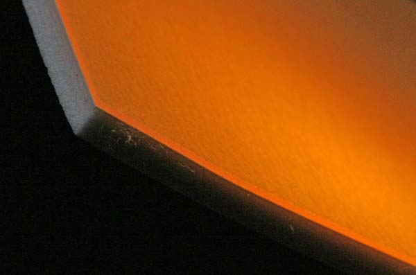 OPV Tanzteppich in Gelb und im Schnitt, deutlich ist die Transparente Solarschicht
