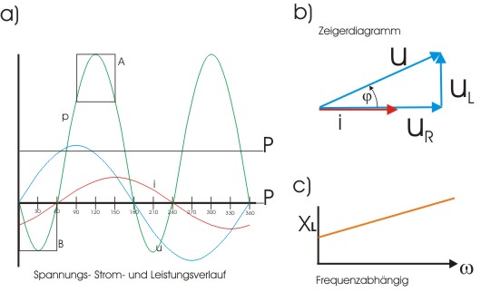 Eine Spule ist das Zusammenwirken von einem Ohmschen Wirk-Widerstand und einem induktiven Blind-Widerstand.