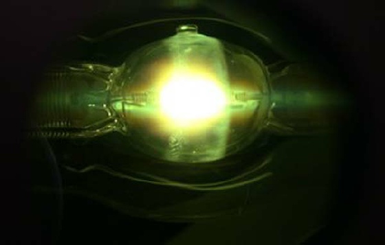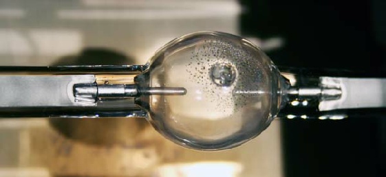 Aufblasen der Brennkammer bei 2.500W Leuchtmittel das mit 4.000W betrieben wurde. (Bruch des Außenkolbens beim Transport) Quelle: Osram