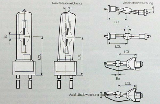 Halogenmetalldampflampen haben ähnlich wie Halogenleuchtmitteln ein Lageproblem. Jedoch aufgrund des Aufbaues der Metalldampflampe kommen erschwerende Faktoren hinzu. Einmal befinden sich zwei Elektroden im Glaskörper an deren ende sich das Licht spendende Plasma befindet.