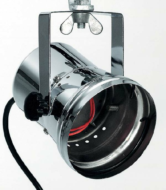 Betrachtet man die Leuchtmitteltabelle, so wird man feststellen, das der Blinder an für sich mit dem ACL Leuchtmittel einen Abstrahlwinkel von ca. 12° und mit DWE Leuchtmittel ca. 35° aufweist. So kommt man mit dem ACL in die Tiefe und mit dem DWE wird die vorder breite Fläche bedient. Was aber, wenn man auf ca. 20m nur einen sehr kleinen Gegenstand anleuchten will wie z.B. eine Discokugel. Dazu ist der Pinspot hervorragend geeignet. Sein Leuchtmittel ist das am engsten abstrahlende Leuchtmittel mit bis zu 2,5° und wird um die 6V betrieben. Der passende Transformator ist wegen der geringen Leistung des Leuchtmittels von 30 Watt so kompakt, das er im Scheinwerfergehäuse mit integriert werden kann. Eine andere Spezialisierung erfolgt mit dem Trussspot. Beim Trussspot ist aber nicht ein anderer Leuchtmitteltyp entscheidend, sondern die Gehäusebauform. Denn dieser Scheinwerfer soll innerhalb der Traverse platziert werden. So sind seine Bügelmaße und Griffe so zu Plazieren, das er auch in eine 30er Traverse Platz findet und gut befestigt werden kann. Der Effekt der beleuchteten Alluminiumkonstruktion wird immer gerne angewendet, um die Szenenfläche in einem Raum zu verwandeln und mit den entsprechenden Farben lassen sich überzeugende Stimmungen schaffen. Auch bei Trussbeleuchten ist ein sehr enger Abstrahlwinkel von Vorteil. So Sind ca. 10° durchaus üblich, einem Abstrahlwinkel der auch bei LED-Strahlern wiederzufinden ist. Der Trusspot wird so er erste Scheinwerfertyp sein der vollständig von der LED verdrängt werden wird.
