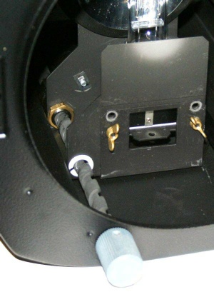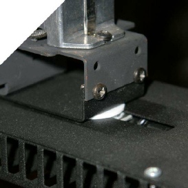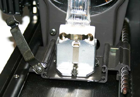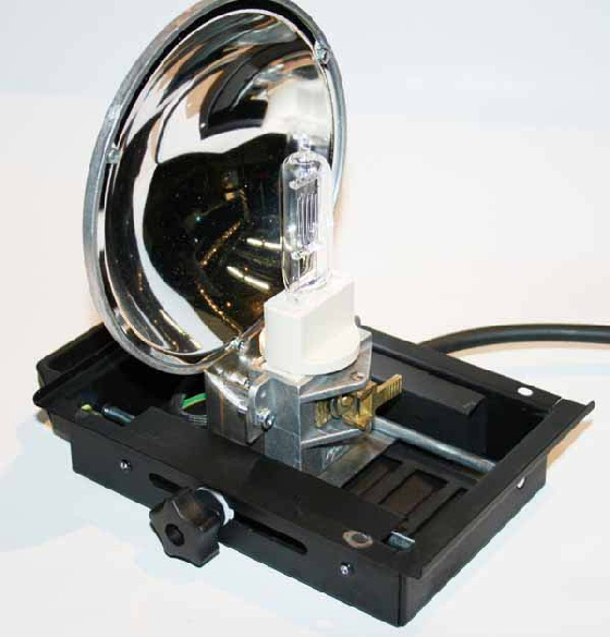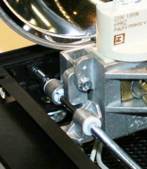 Leuchtmittelschlitte ns erfolgt spielfrei über Stahlstangen und Teflongleitern.