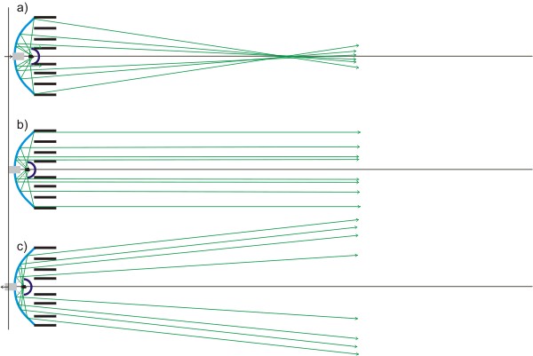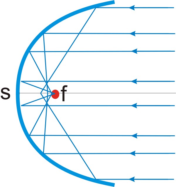 Sphärische Aberration bedeutet, das Lichtstrahlen die weiter von der optischen Achse entfernt reflektiert werden noch vor dem Brennpunkt die Optische Achse schneiden.
