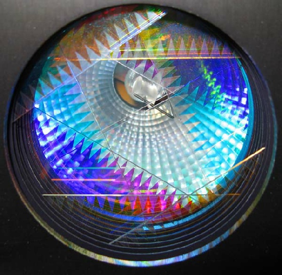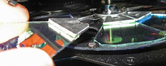 Das gezackte Prinzip kann natürlich verfeinert werden. Um eine homogenere Farbmischung zu erreichen werden auf dem Glasträger die dichroitischen Flächen in der Art angeordnet, dass viele spitze Dreiecke parallel in den Strahlengang hinein gefahren werden. Man bedient sich wieder rechteckiger Blöcke die nun über die gesamte Fläche das Keilmuster tragen. Diese Blöcke werden aber dementsprechend wesentlich stärker mit der Überlappung in den Strahlengang hineinfahren um eine vollständige Filterfläche zu bilden. Bei großflächigen Filteranordnungen, wie sie z.B. bei Fluterähnlichen Moving Lights Anwendung finden, werden die Keilträger mit Kulissensystemen in den Strahlengang eingebracht. Aber in der Regel findet man die engen Filterkeile auf einem rotierenden Glaskörper aufgebracht. Mit zunehmender Rotation werden die Abstände zwischen den dichroitischen Flächen immer geringer, so sich am Ende ein vollflächiger Filter im Strahlengang befindet. Je nach verwendetem Typ von Glasträger können die Verluste Strahlengang deutlich sichtbar sein. So verwundert es nicht, dass in der 0 Stellung – also Farbfilter nicht im Strahlengang – der rotierende Glasträger über einen Ausschnitt verfügt, so dass das Licht nicht erst das Medium Glas durchdringen muss. Dies bedeutet den Vorteil eines insgesamt höheren Wirkungsgrades bei weißem Licht, beim Einfahren der Farbe steht dem Wirkungsgrad aber eine brechende Glaskante entgegen. Dieser Effekt ist meist auch deutlich wahrzunehmen. Vom Prinzip her ist die Reihenfolge der Farbfilter beliebig. Wenn jedoch bei Movinglights eine bestimmte Anordnung herauskristallisiert, sind dies meist Überlegungen der Wärmebelastungen im Kopf oder den Einfluss der vom Filter reflektierten Farben und wohin diese Refexionen weitergestreut werden bzw. ungünstiger Weise wieder in den Strahlengang zurückreflektiert werden.