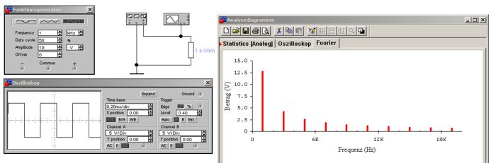 Ein Rechtecksignal (Digitalsignal) setzt sich aus vielen höheren Oberwellen zusammen.